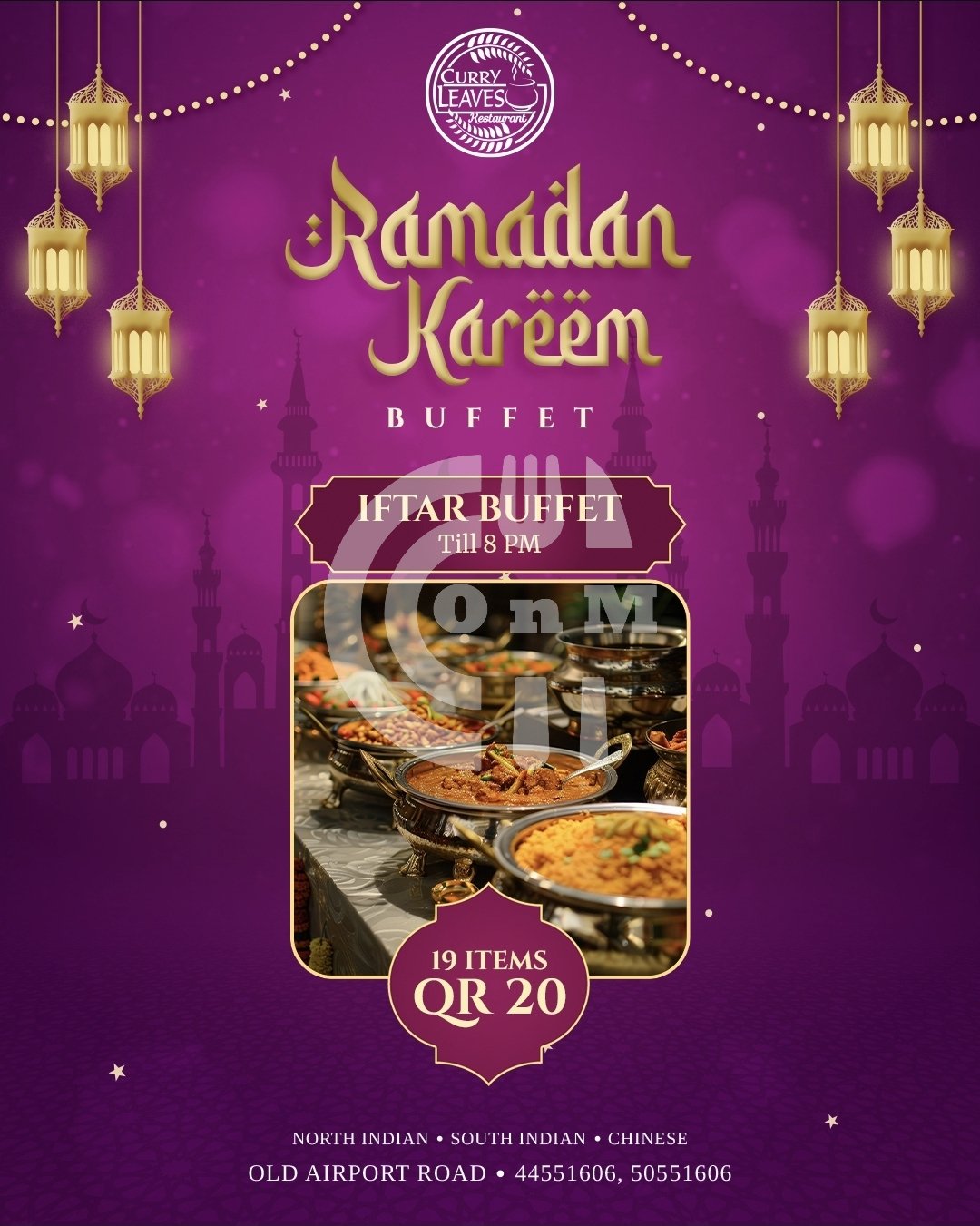 Ramadan Kareem from Curry Leaves Restaurant! Make your Suhoor special with our delicious Ramadan Kareem Suhoor Buffet starting from 11 PM!