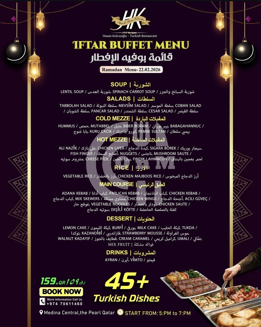 45+ authentic Turkish dishes waiting for you! 159 QAR per person URBAN POINT APPEALABLE Medina Central, The Pearl Qatar Tag your Iftar squad!