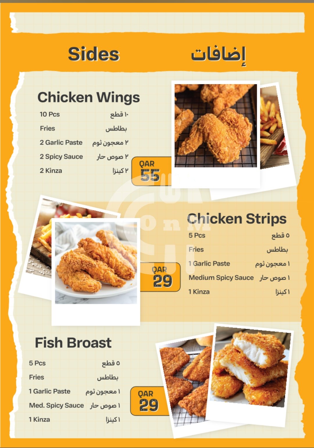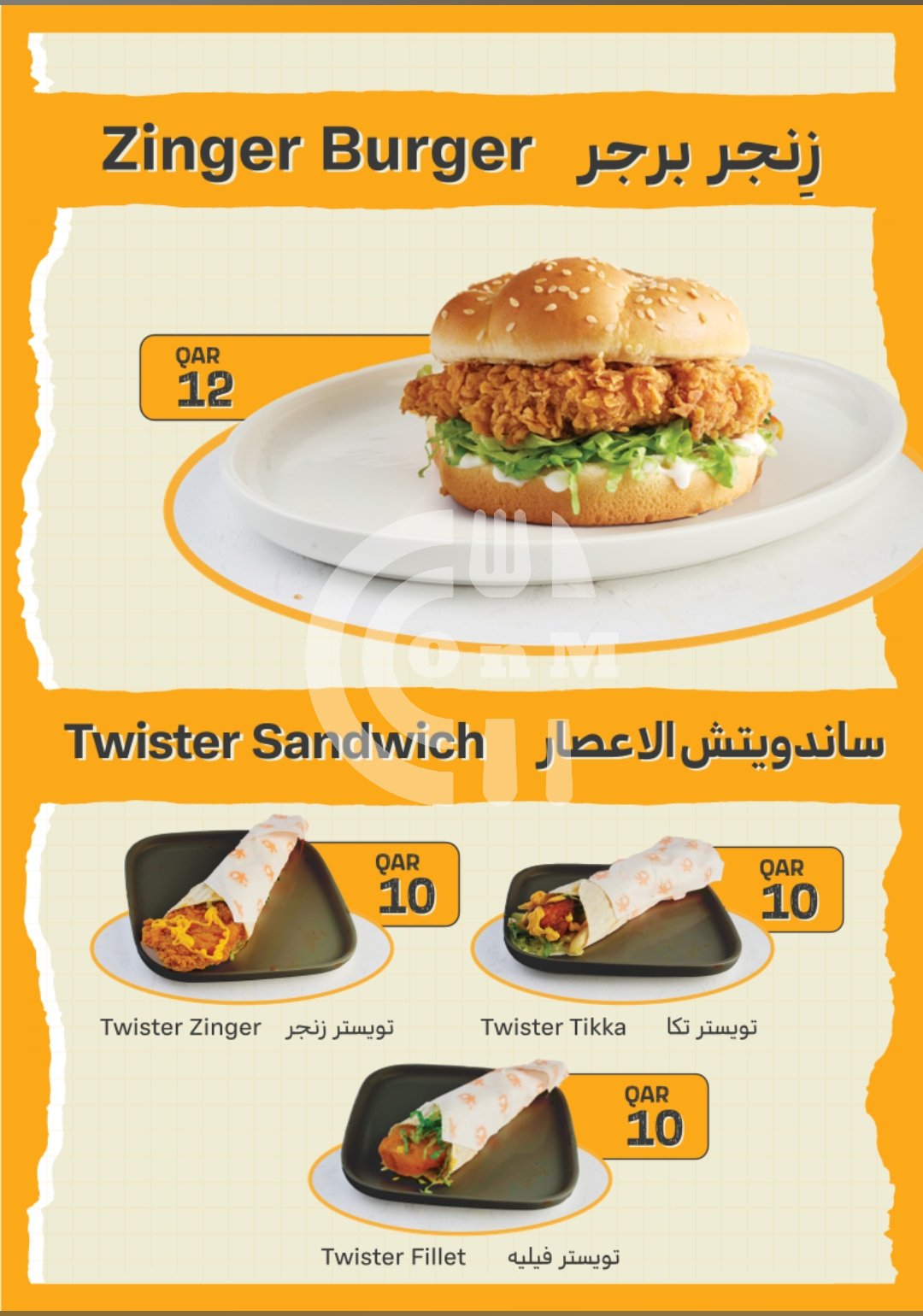 Their best selling dishes are Chicken Strips 6 Pieces, Snack Meal 4 Pieces Normal, Value Meal 8 Pieces and Garlic Paste., although they have a variety of dishes and meals to choose from like Arabic, International, Chicken.