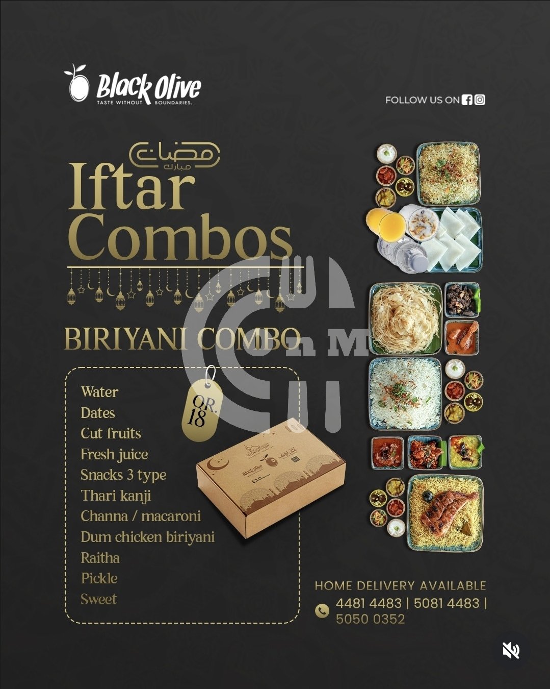 This Ramadan, indulge in our Special Combo Feast featuring: Birivani Combo Ghee Rice Combo Maibooz Combo Pathiri Combo