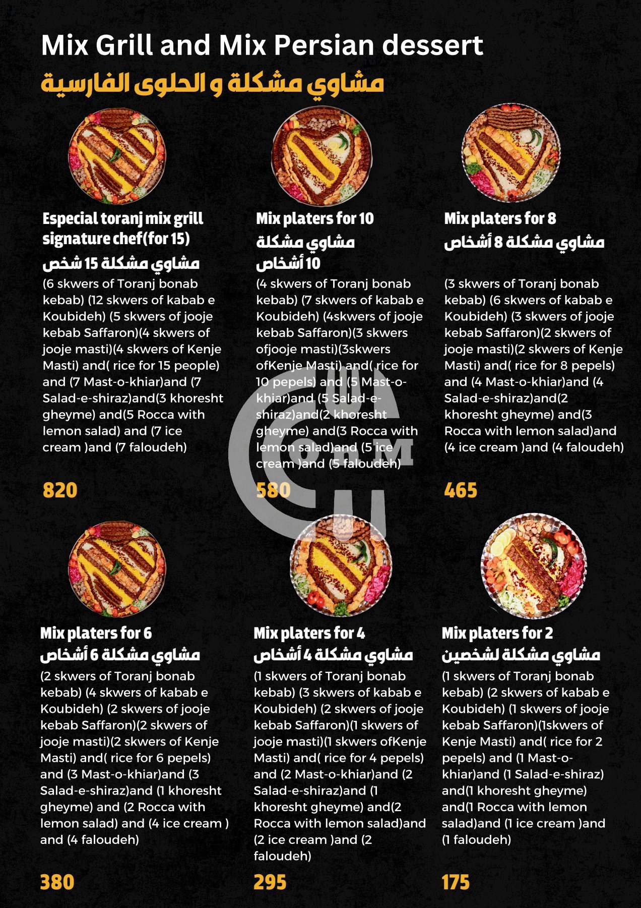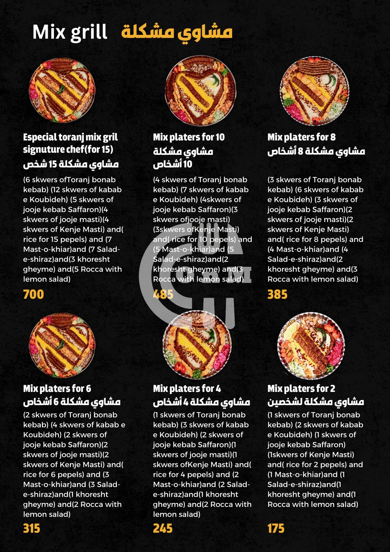 Kabab Toranj Restaurant is available for delivery at your locationKabab Toranj Restaurant serves as an eatery located in Qatar, serving a selection of Grills, Iranian, Kebab that delivers across Al Thumama .