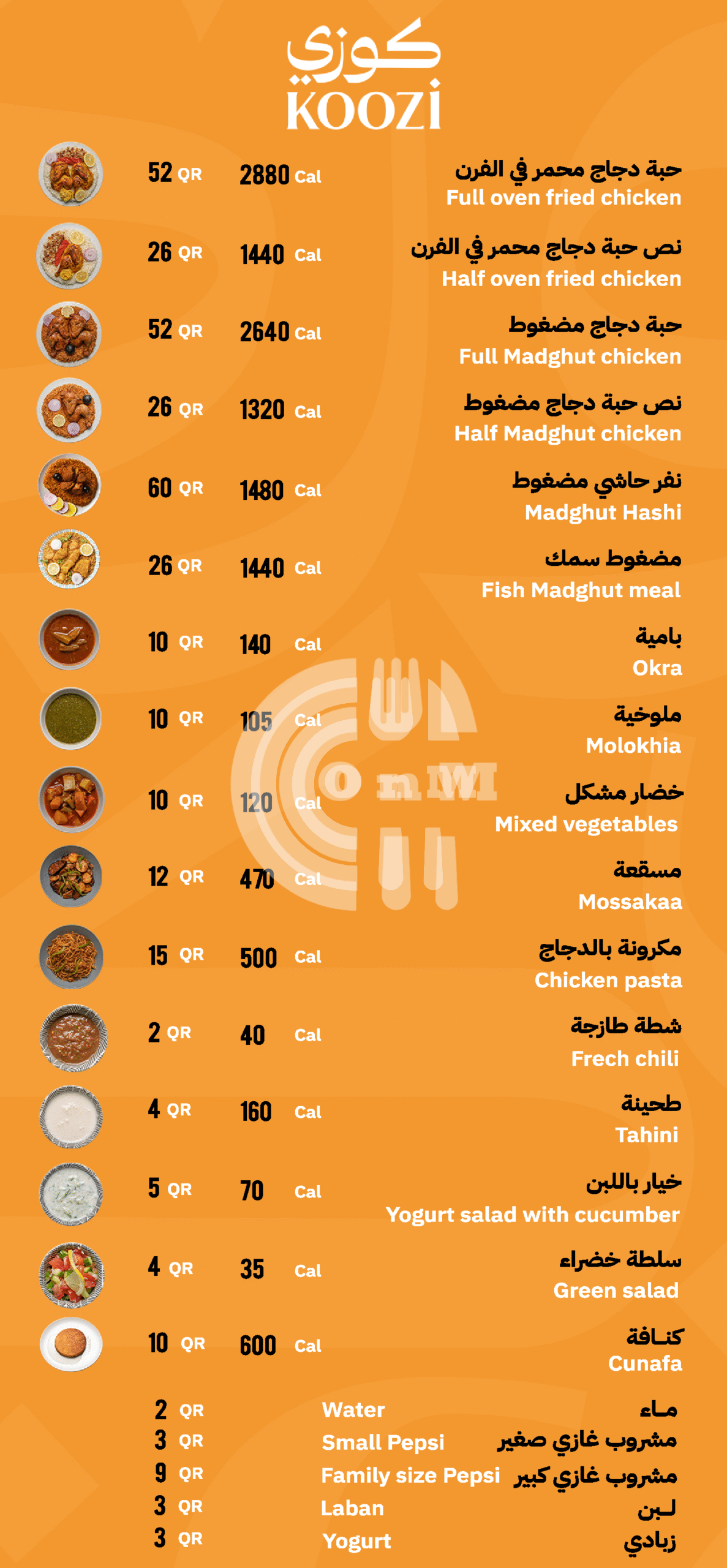 Koozi is available for delivery at your locationKoozi serves as an eatery located in Qatar, serving a selection of Arabic, Beverages, Desserts that delivers across Al Sheehaniya, Al Wakrah, Dubai Silicon Oasis, Muaither and New Al Rayyan.