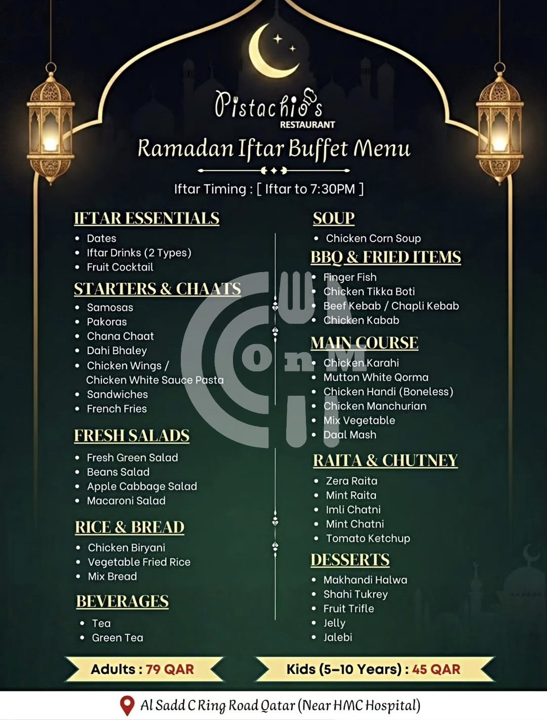 Ramadan Kareem iftar Buffet at Pistachio’s Restaurant