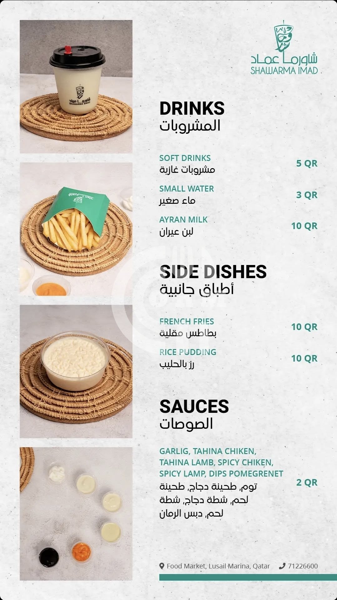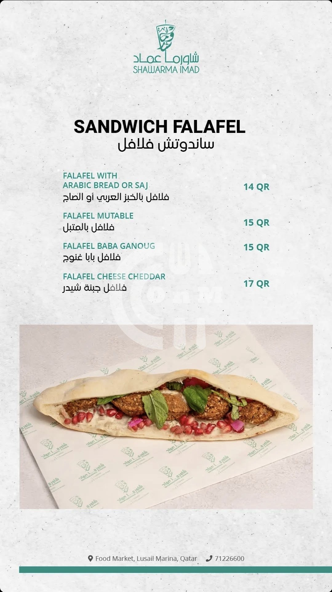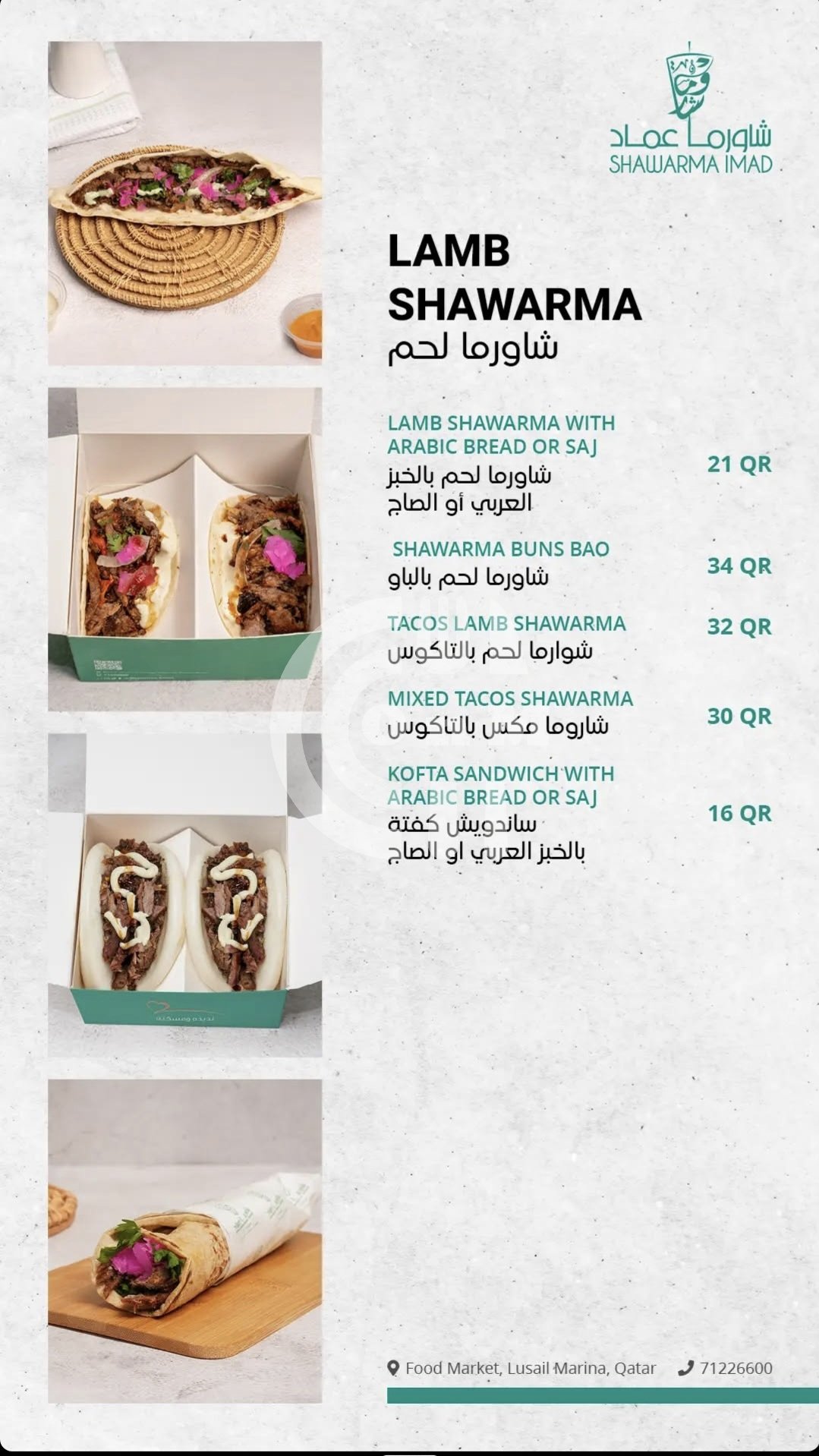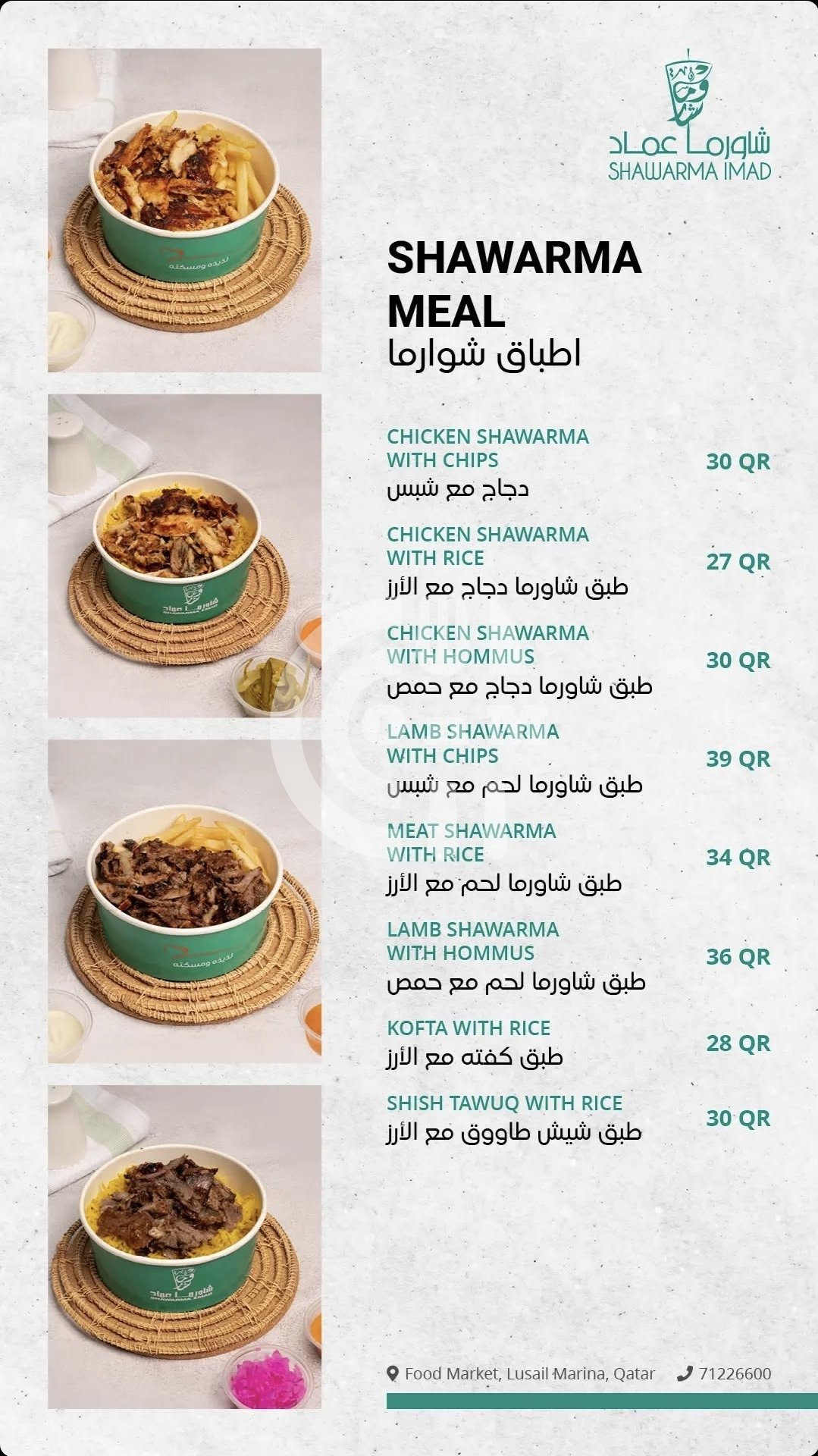 Shawarma Emad is available for delivery at your locationShawarma Emad serves as an eatery located in Qatar, serving a selection of Arabic, Shawarma, Sandwiches that delivers across Lusail.