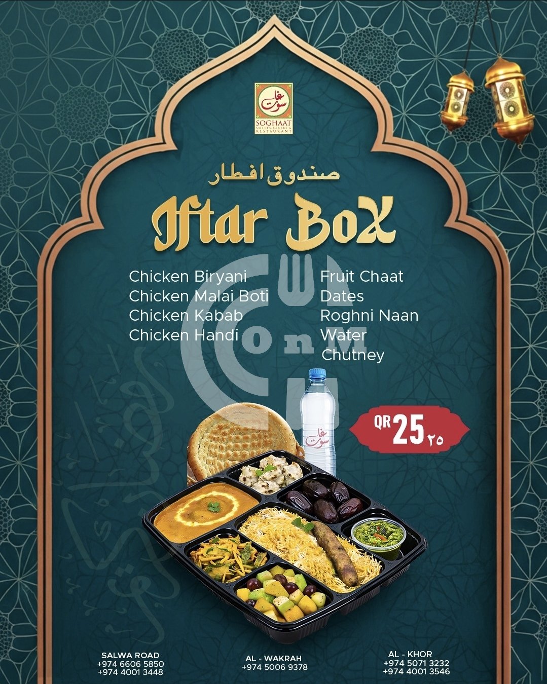 Pre-order your Iftar Box from Soghaat Doha and make every sunset special.
