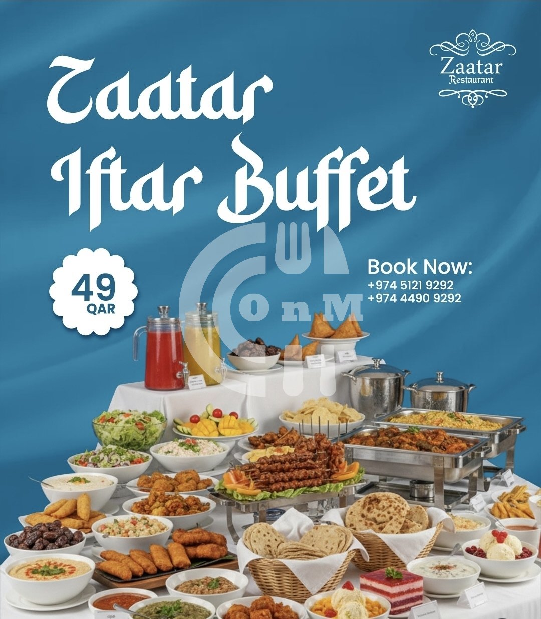Grand Iftar buffet with around 40 items at Zaatar!! Book yours now!! Per head- 49 QAR Kids-25 QAR